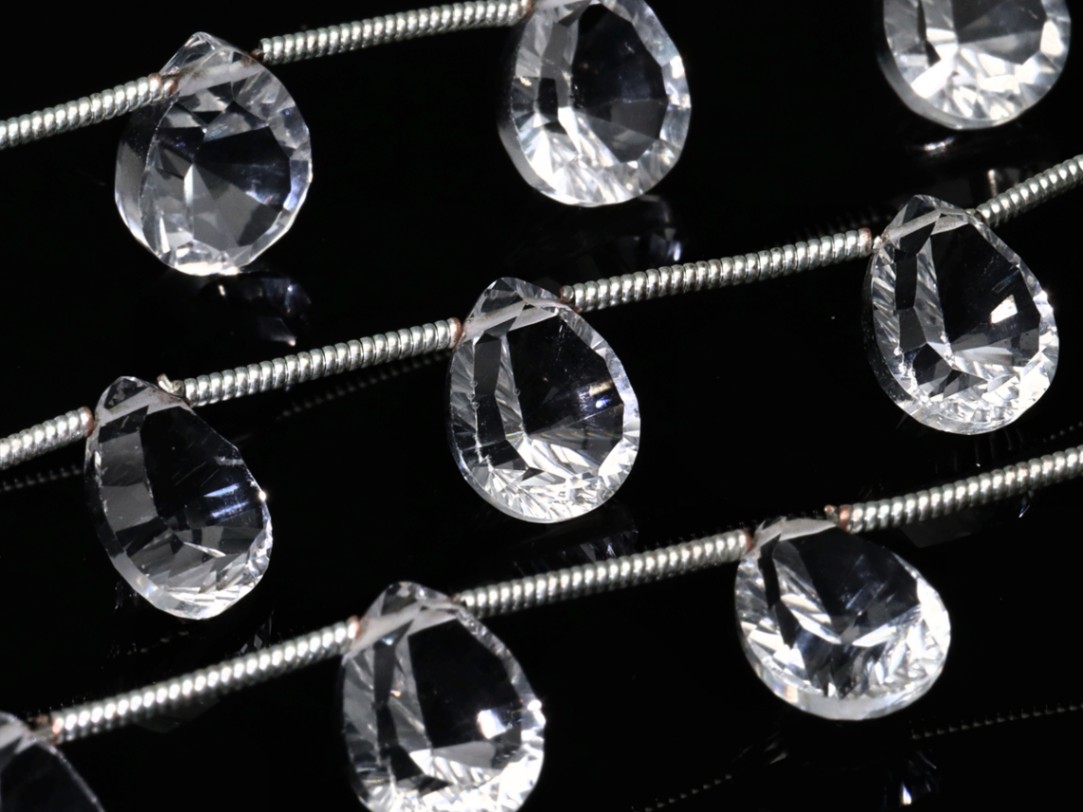 【宝石質】高品質インドビーズ★美しい発色とカット★天然石ビーズ/水晶(クリスタル/quartz/cristal/石英)/ペアシェイ...