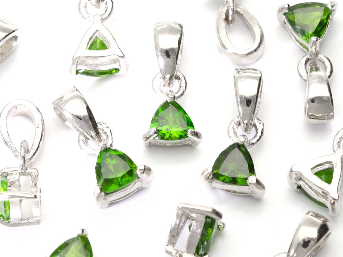 ロシア産★sv925★天然石ペンダントトップ/クロムダイオプサイト(diopside/透輝石)/1個【天然石/パワーストーン】【ア...