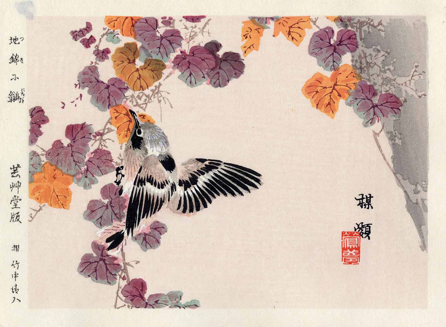 幸野楳嶺 木版画 まめどり Bairei Kono Woodcut Cuttlefish bird