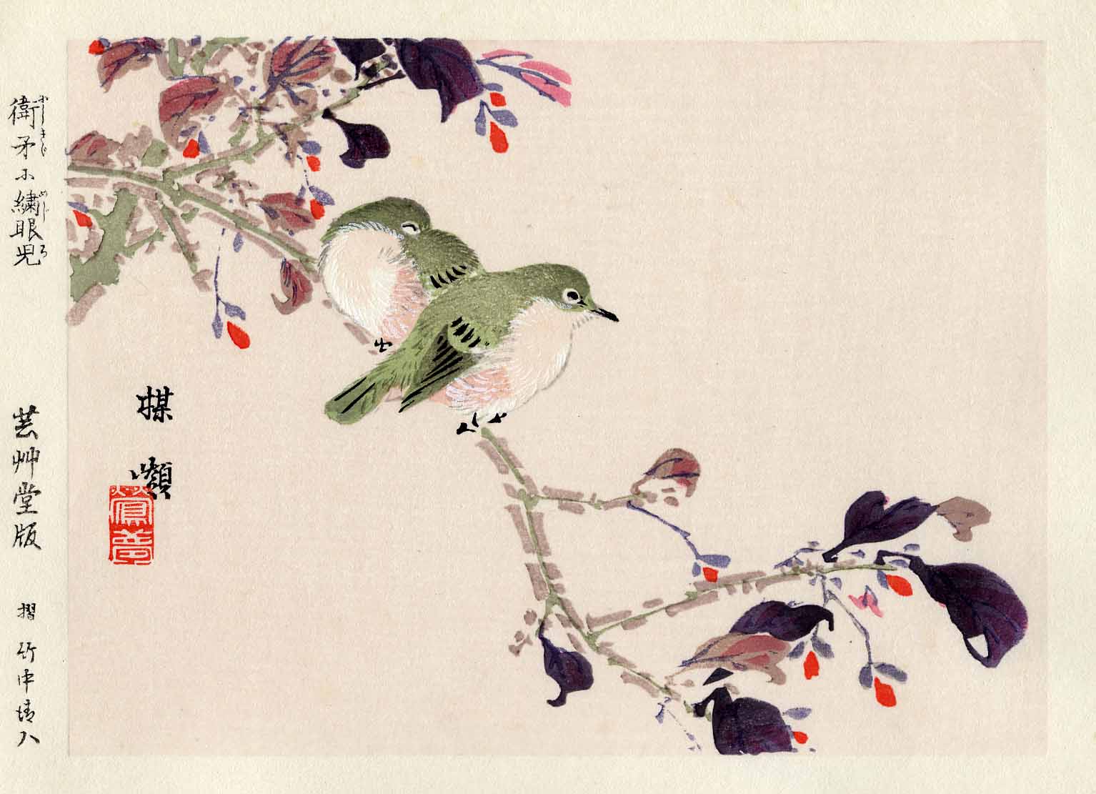 幸野楳嶺 木版画 めじろ Bairei Kono Woodcut Silver eye