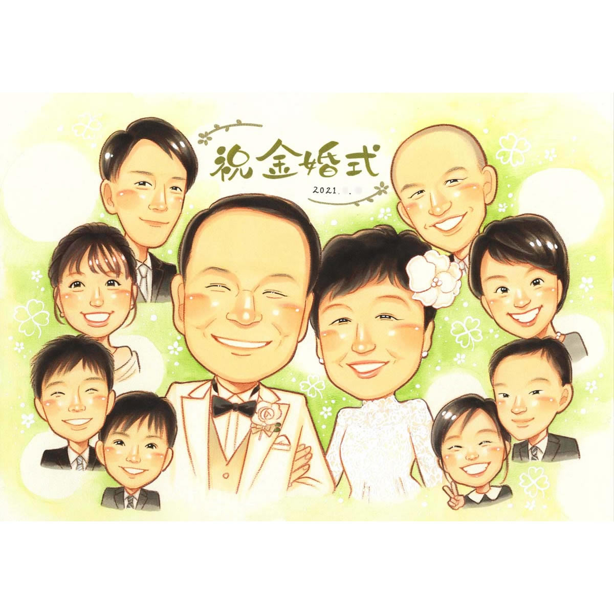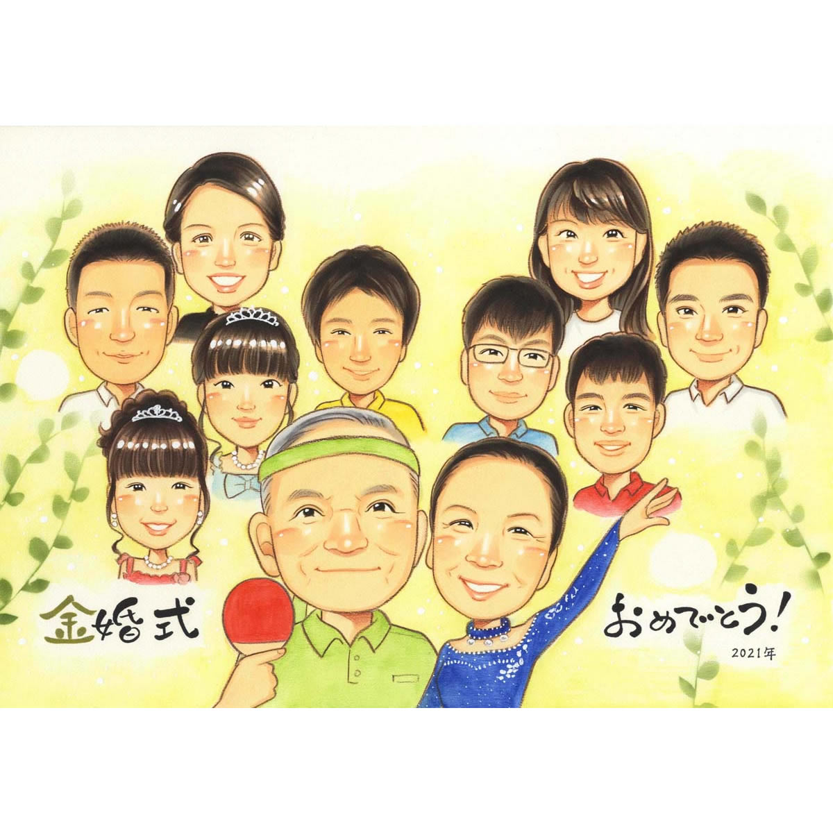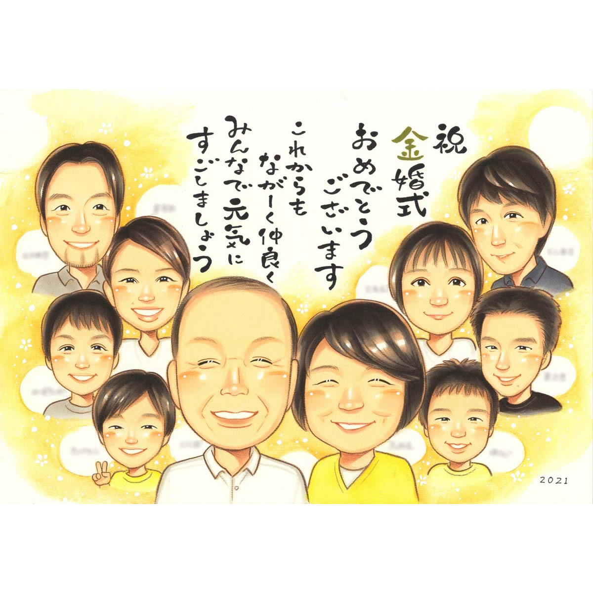 金婚式結婚50年 ツーショットはもちろん、家族みんなでわいわいとお祝いする似顔絵もできますよ。 きよら 結婚記念日 金婚式 銀婚式...