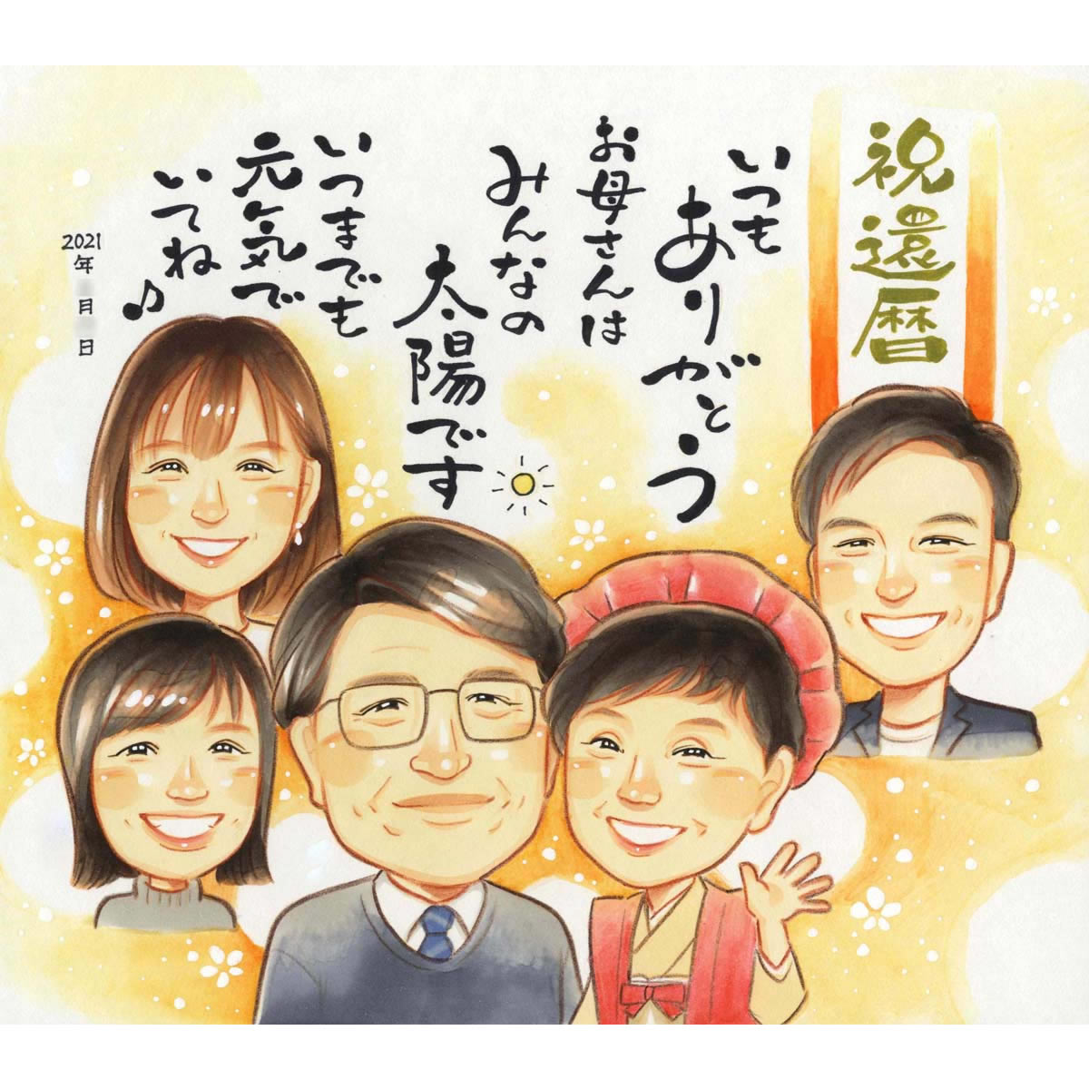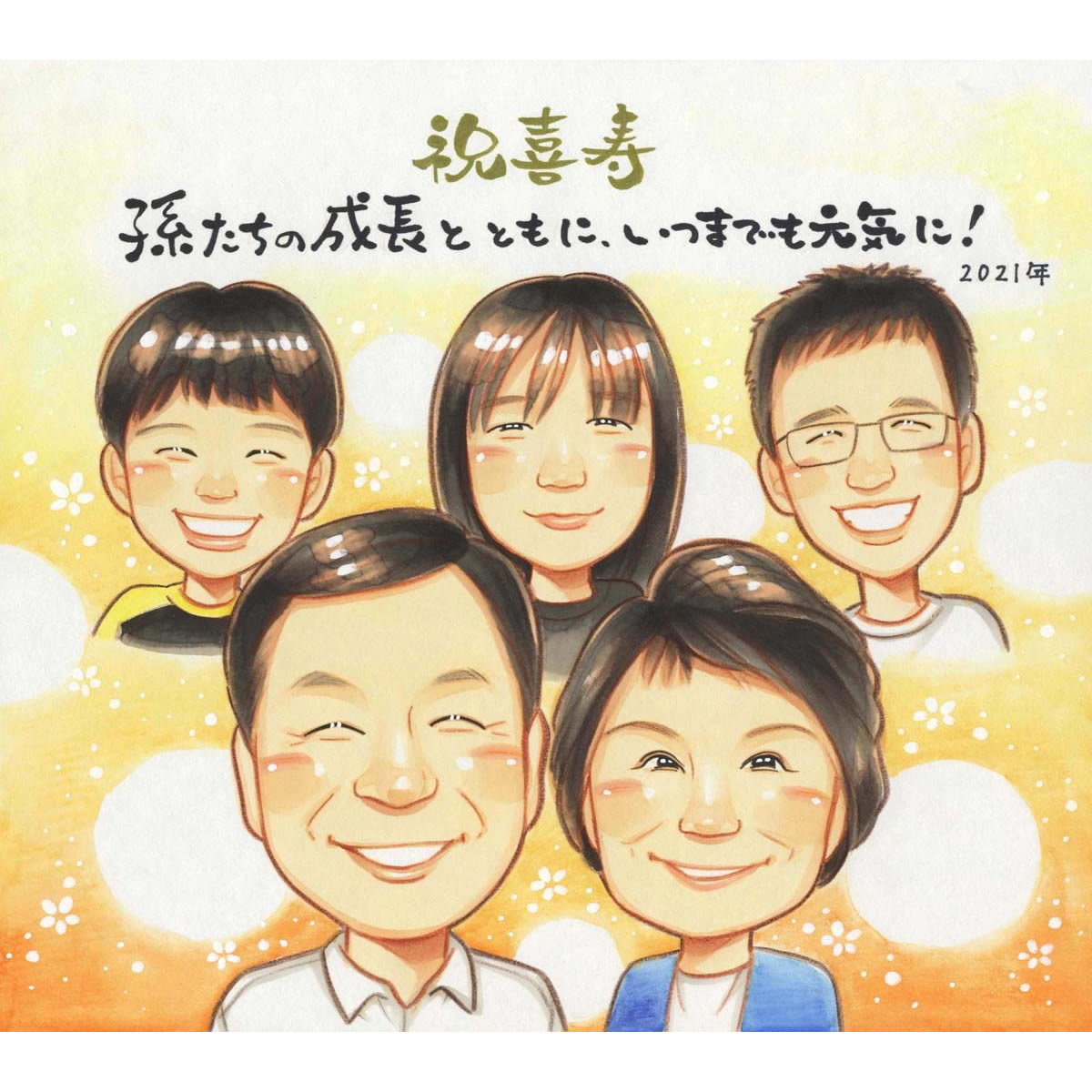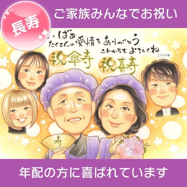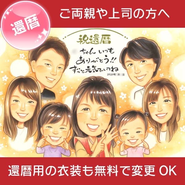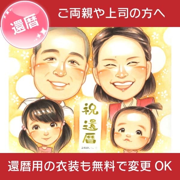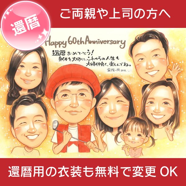 還暦のプレゼントに子供と孫と一緒の似顔絵 きよら 還暦祝い 古希祝い 喜寿祝い 傘寿祝い 米寿祝い 卒寿祝い 白寿祝い 百寿祝い ...