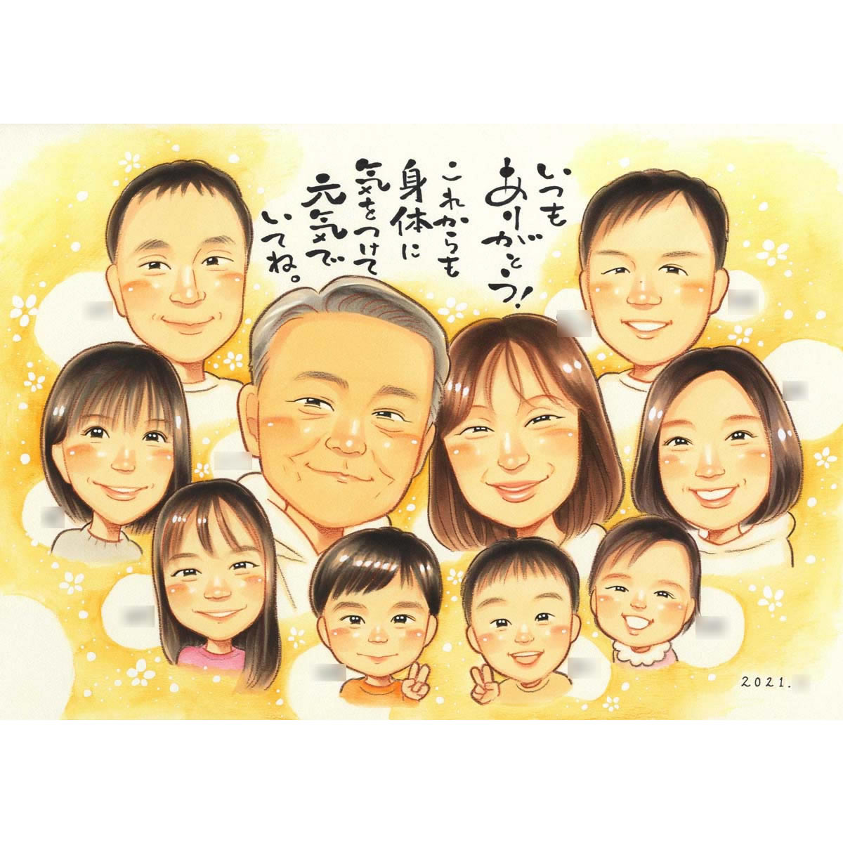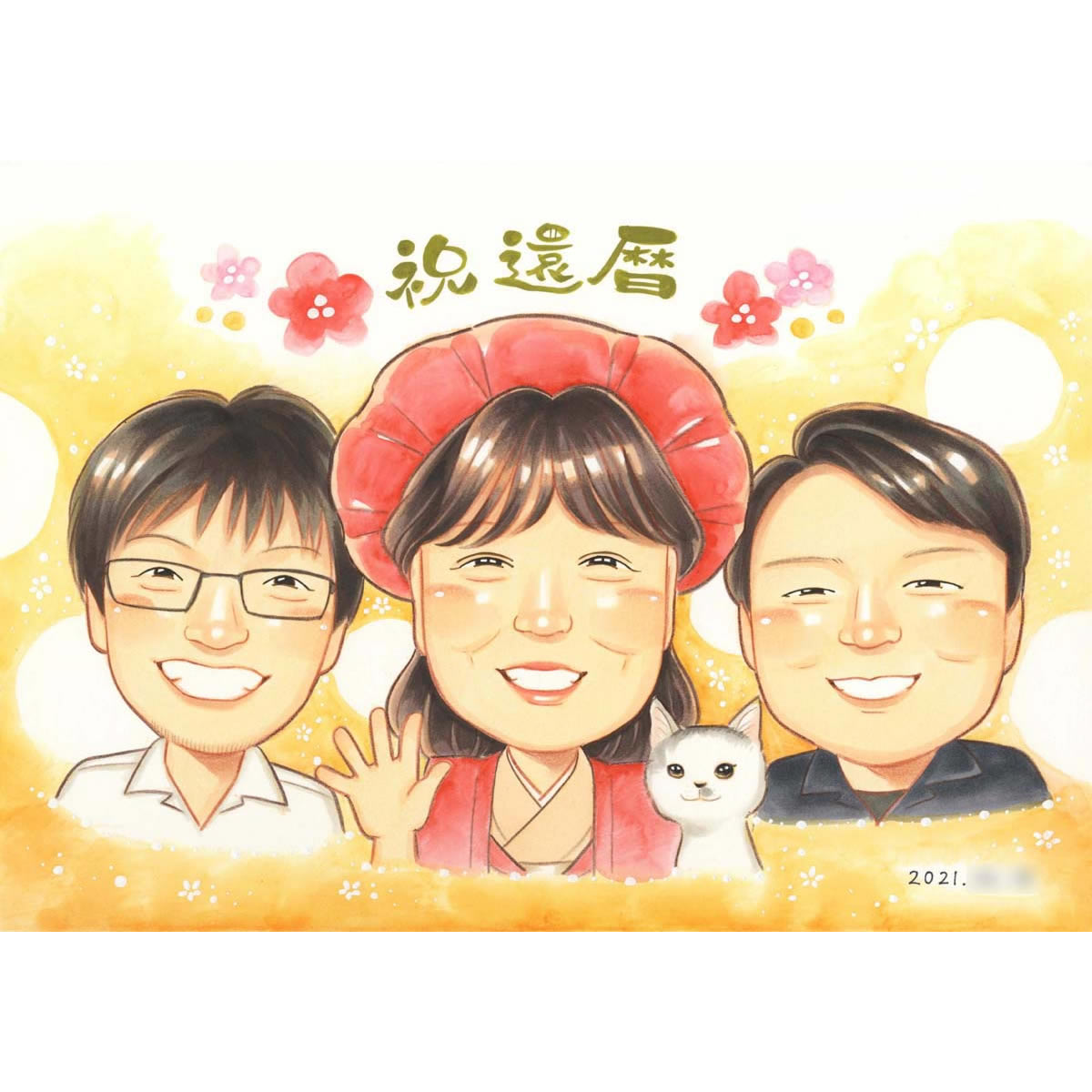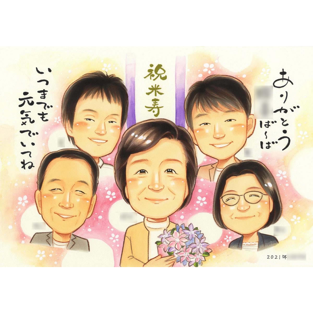 還暦のプレゼントに子供と孫と一緒の似顔絵 きよら 還暦祝い 古希祝い 喜寿祝い 傘寿祝い 米寿祝い 卒寿祝い 白寿祝い 百寿祝い ...
