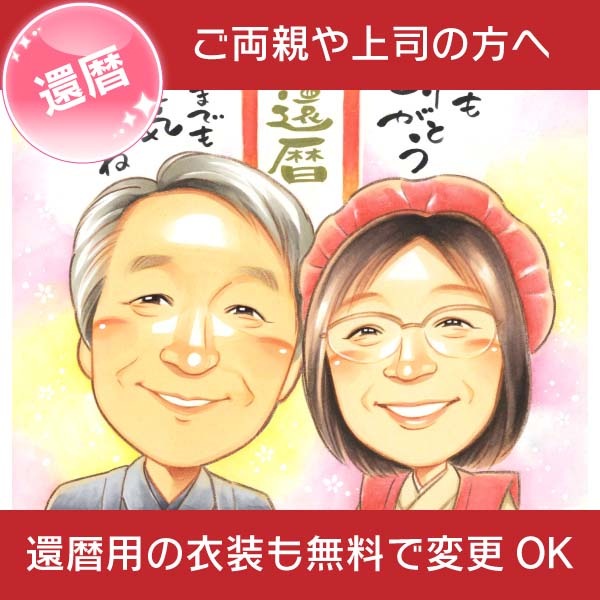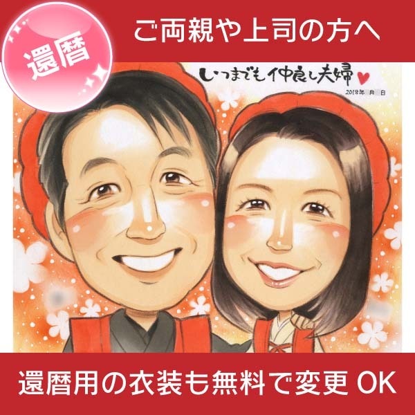 お母さん、お父さんの還暦のお祝いに喜ばれる似顔絵プレゼント きよら お祝い プレゼント ギフト 贈り物 贈呈用 おすすめ 還暦 古...