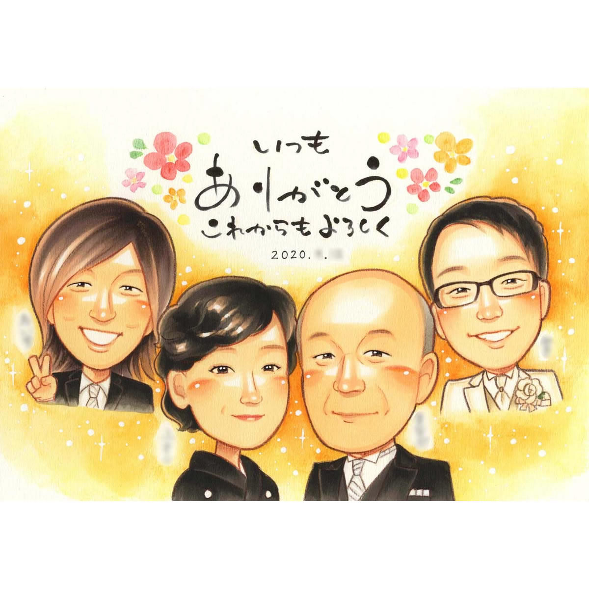 父 母 両親 おじいちゃん おばあちゃんに喜ばれる家族の似顔絵 きよら 似顔絵 プレゼント お祝い 還暦 古希 喜寿 傘寿 米寿 ...