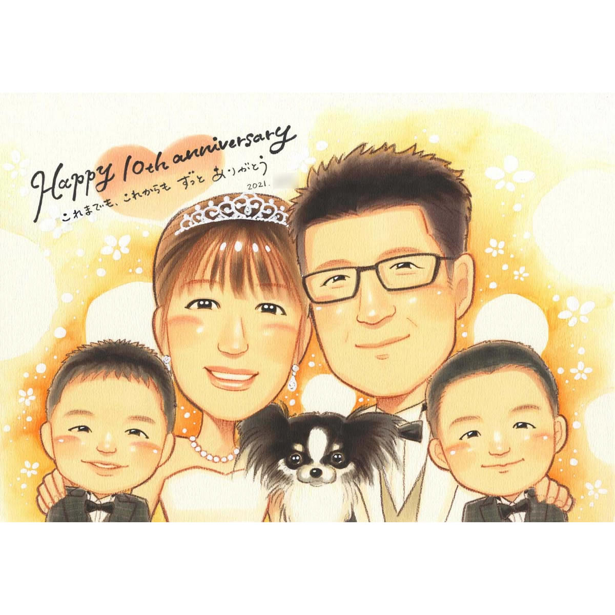 結婚10周年のお祝いに似顔絵のプレゼント きよら 結婚10周年 銀婚式(結婚25周年) 真珠婚式(結婚30周年) 珊瑚婚式(結婚3...