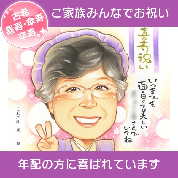 古希70歳 喜寿77歳 傘寿80歳 米寿88歳 を似顔絵でお祝い きよら 還暦 60歳 古希 70歳 喜寿 77歳 傘寿 80歳 ...