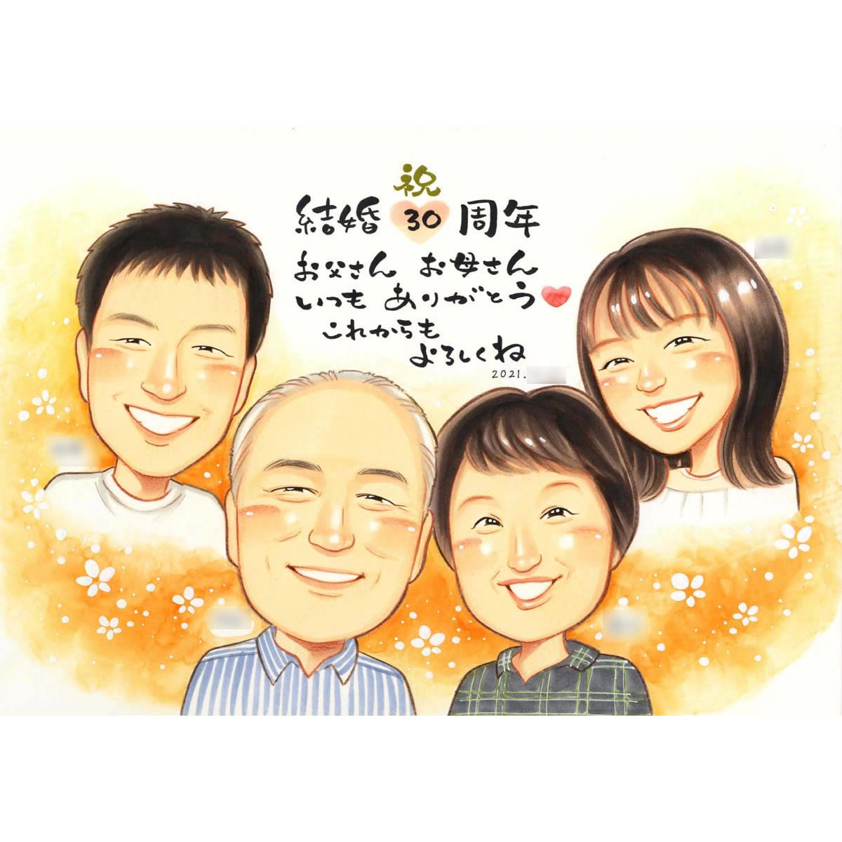 結婚30周年のお祝いに家族の似顔絵で形にのこしませんか? きよら 結婚10周年 銀婚式 結婚25周年 真珠婚式 結婚30周年 珊瑚...