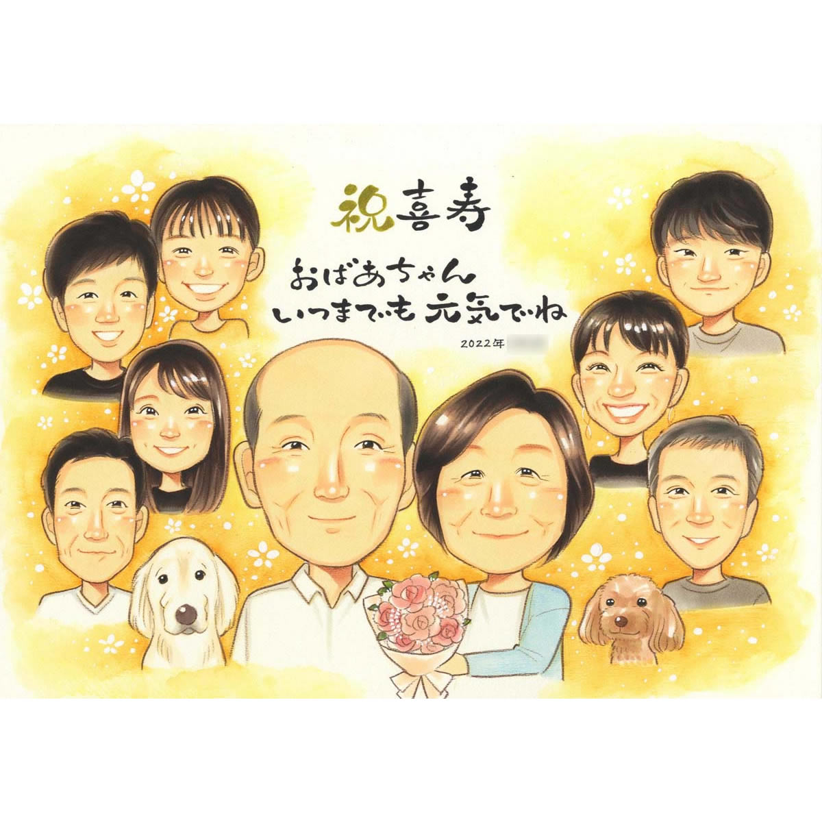 77歳喜寿のお祝いにおじいちゃんおばあちゃんが喜ぶ家族の似顔絵 きよら プレゼント お祝い 贈り物 還暦 古希 喜寿 傘寿 米寿 ...