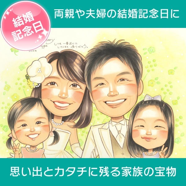 結婚10周年 結婚記念日にずっと飾りたい家族の似顔絵 きよら 結婚10周年 銀婚式 結婚25周年 真珠婚式 結婚30周年 珊瑚婚式...