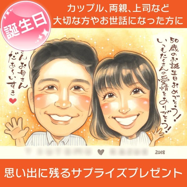 50歳の誕生日に贈る感謝の似顔絵プレゼント きよら 似顔絵 プレゼント お祝い 還暦 古希 喜寿 傘寿 米寿 卒寿 長寿 結婚祝い...