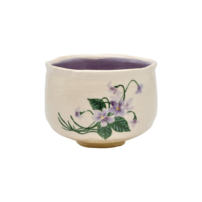 茶碗 白楽 すみれ 吉村楽入作 (桐箱)