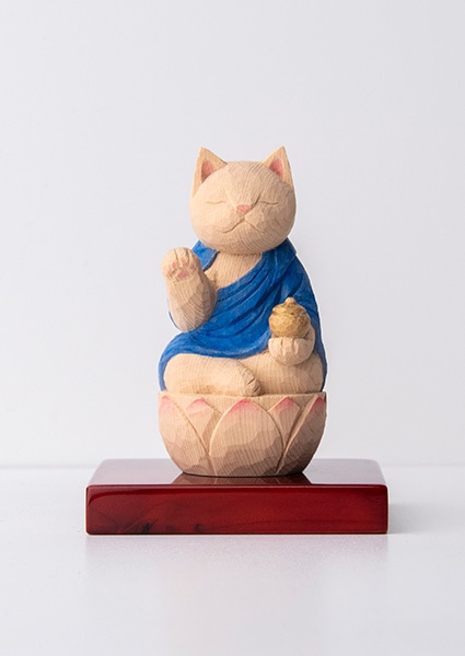 木彫りの薬師猫 袈裟を着た猫仏さま