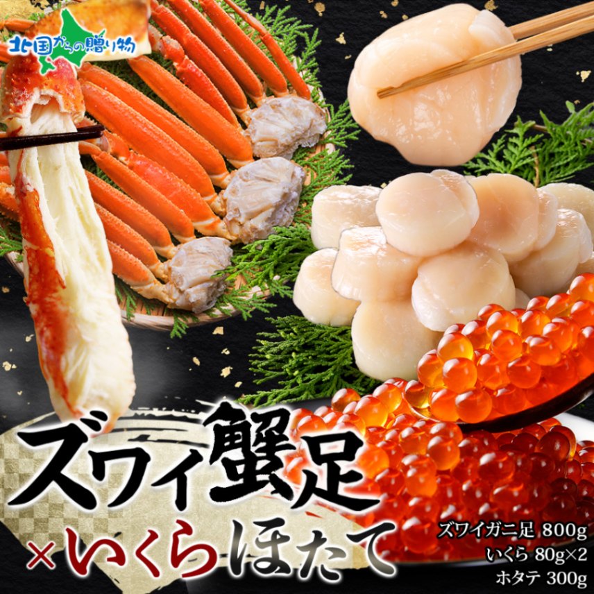 ズワイガニ足800g いくら醤油漬け80g×2 ホタテ300g セット 蟹 かに ズワイ ずわいがに ズワイガニ 脚 足 茹で カ...