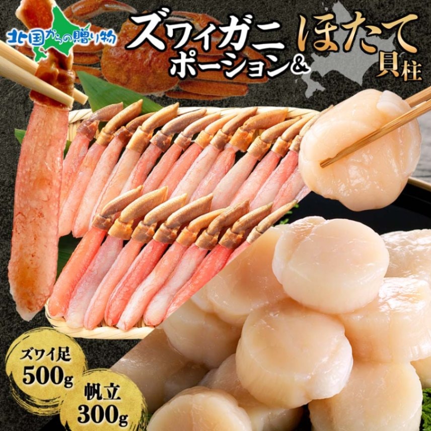 ズワイガニ ポーション500g ホタテ300g セット 蟹 かに ズワイ カニ ずわいがに ズワイガニ むき身 カット済み 帆立 ...