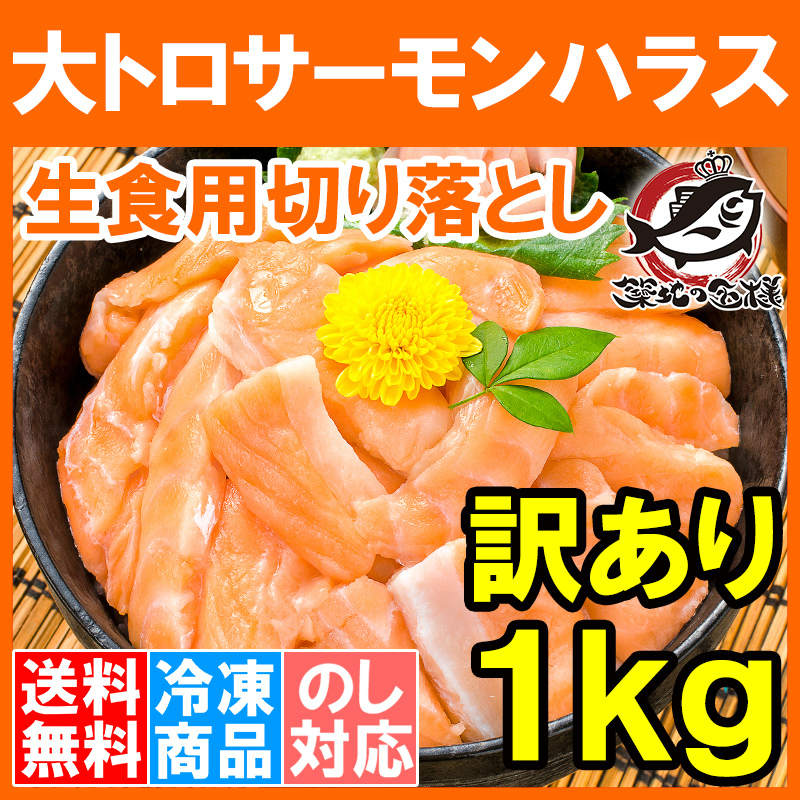 送料無料 訳あり アトランティックサーモン 大トロハラス切り落とし 1kg(生食用スライス・500g×2)