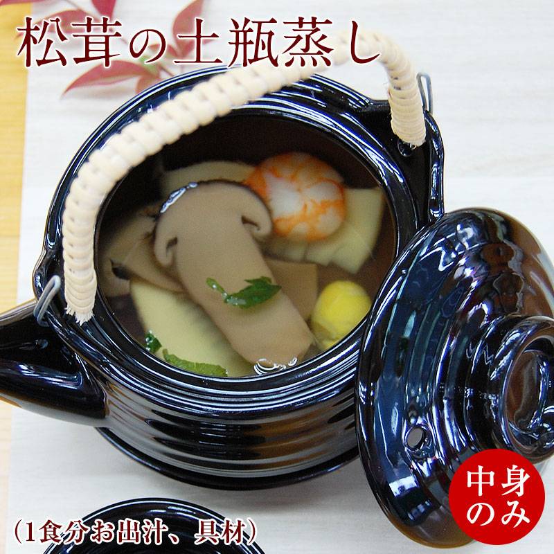 松茸の土瓶蒸し(1食 中身のみ) 料亭のお味と雰囲気をご自宅で! 出汁、松茸、海老、竹の子の穂先、 銀杏、三つ葉セット 8食以上で...