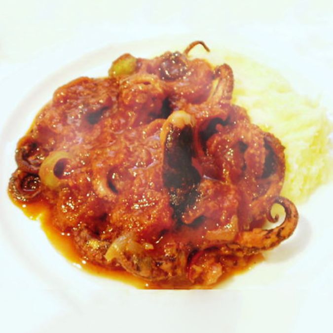 明石の子ダコとオリーブのトマト煮込み マッシュポテト添え