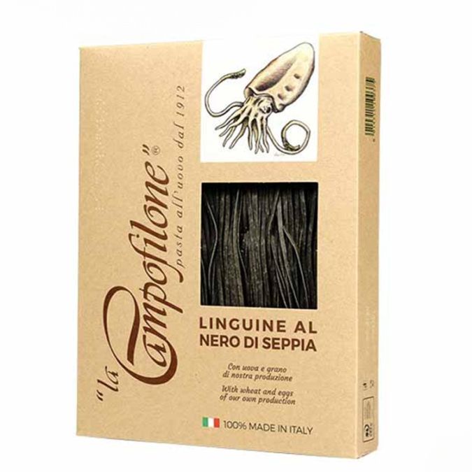 カンポフィローネの卵入りパスタ イカ墨リングイネ