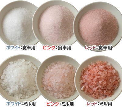 食用・クリスタル岩塩3~8cmタイプ(おろし金用)1kgとレッド岩塩バスソルト(粒状)1kgセット