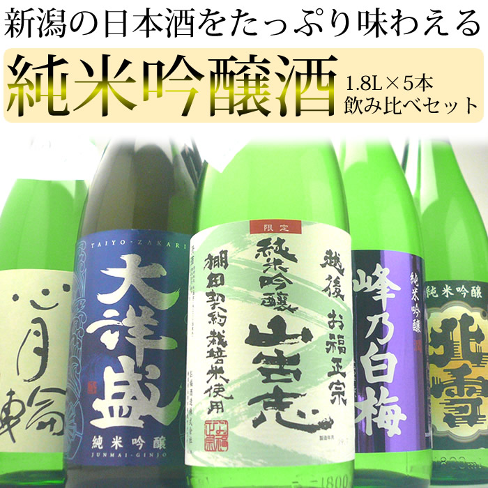 新潟日本酒 純米吟醸酒飲み比べセット1.8L×5本(山古志、峰乃白梅、大洋盛、北雪、心月輪)日本酒 純米吟醸 セット【送料無料】