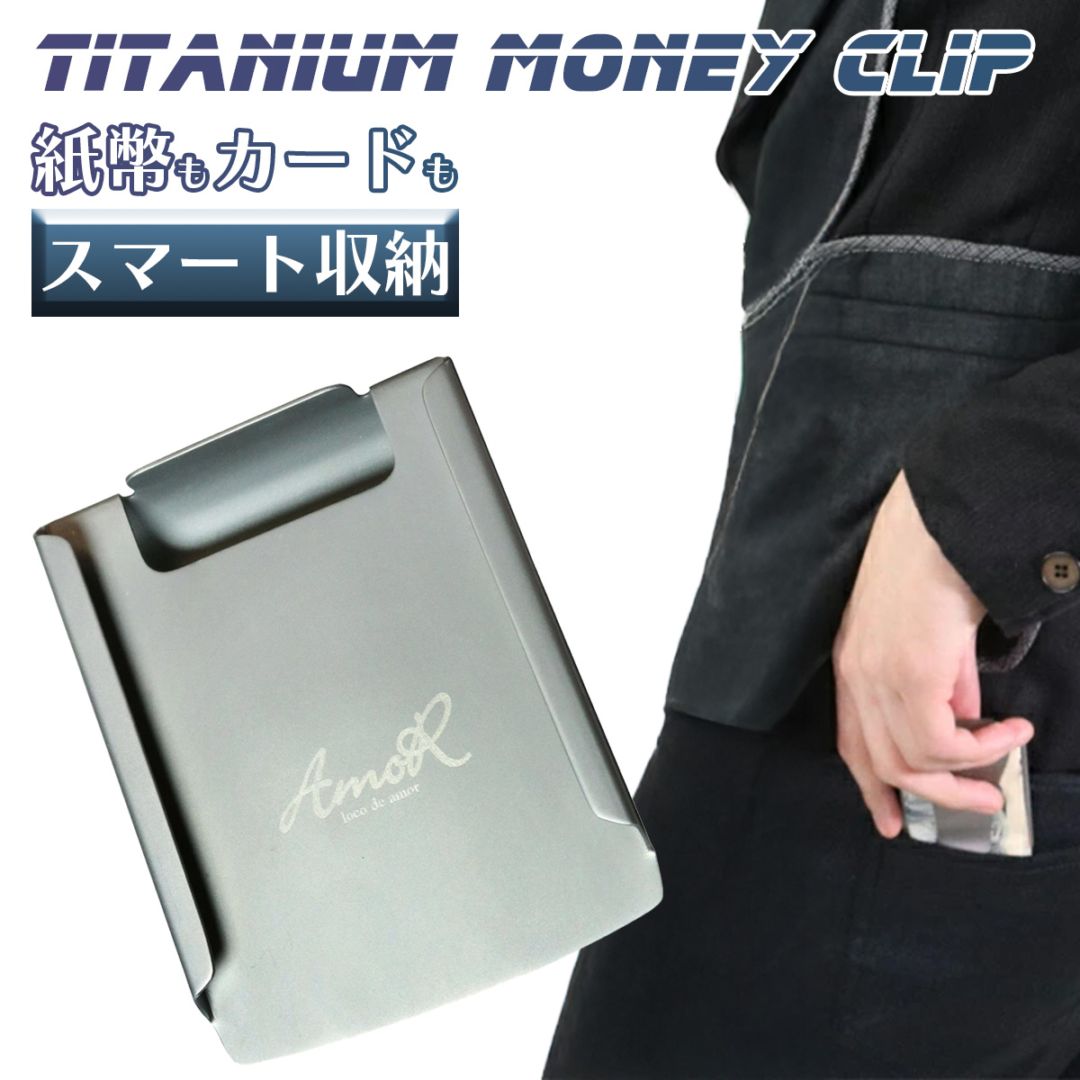 マネークリップカードホルダー 純チタン製 AmoR カードケース メンズ 男性用 財布 ケース ミニマリスト シンプル コンパクト...