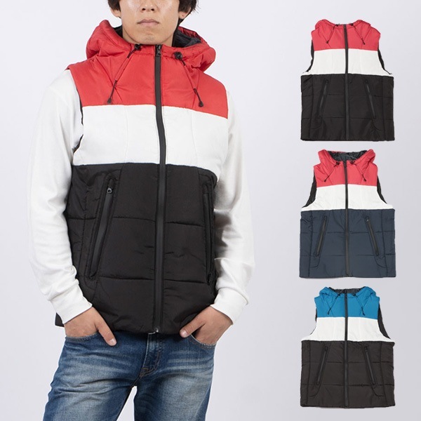 【albino】ZIP切り替えフェイクレイヤードロングベスト