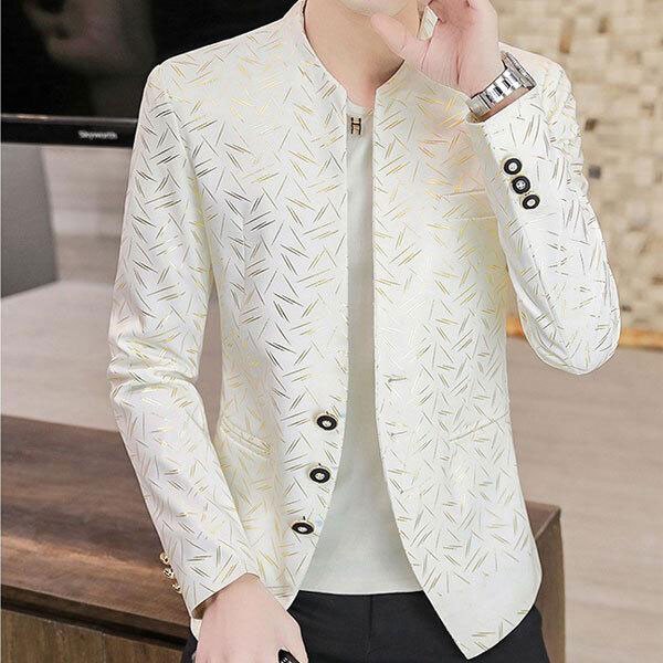 メンズ ノーカラージャケット サマージャケット ブレザー スーツ ジャケット コート アウター 紳士服 薄手 フォーマル 総柄 ワ...