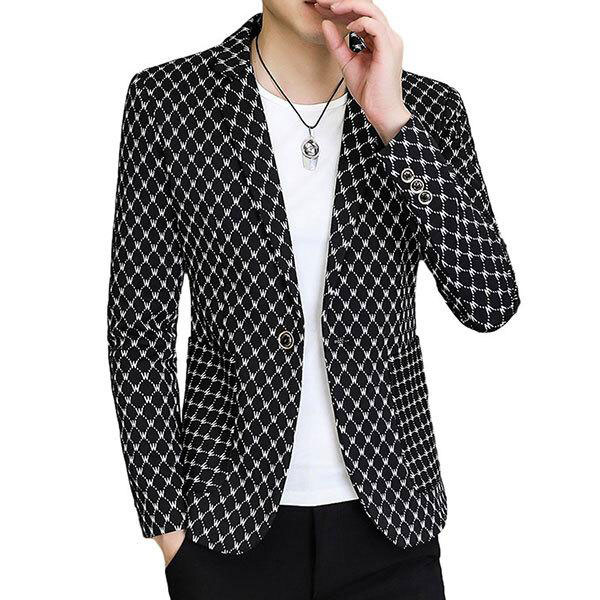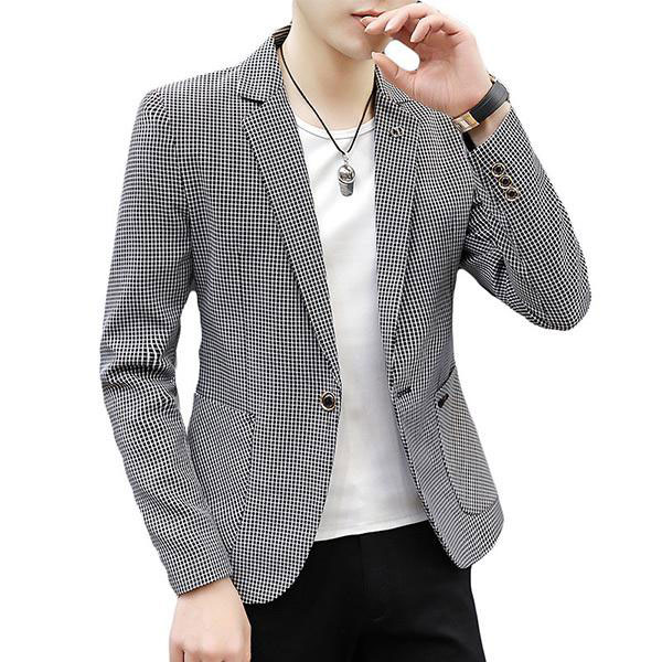 メンズ チェック柄 テーラード ジャケット ブレザー スーツ アウター シングル ボタン ポケット スリムフィット カジュアル 着...
