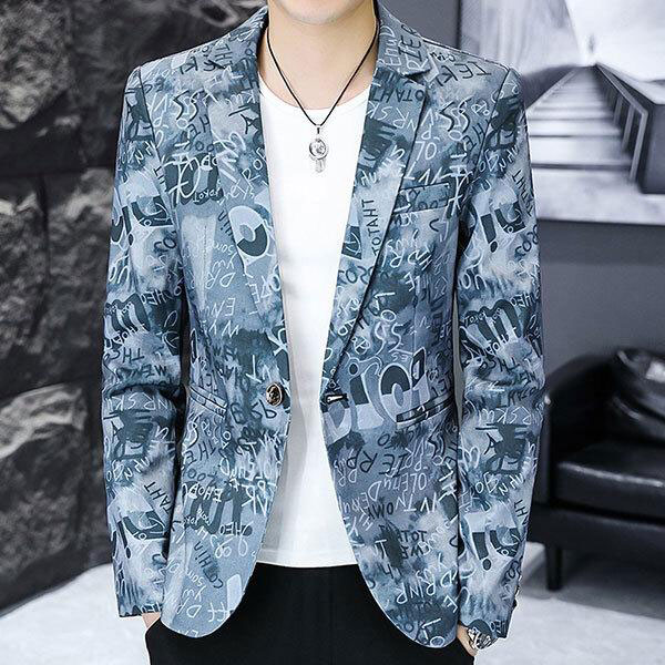 メンズ 総柄 テーラード ジャケット ブレザー スーツ 長袖 アウター 通気性 吸湿性 スリム カジュアル 爽やか 着心地 快適 ...