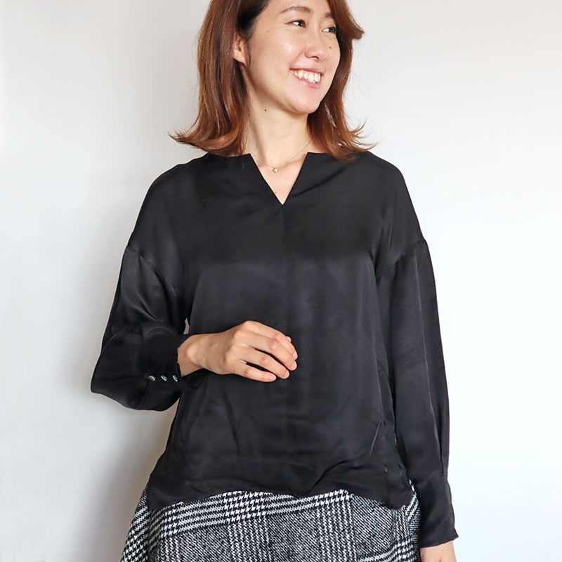 サテン調お袖ボリュームブラウス/Arumlily 8211