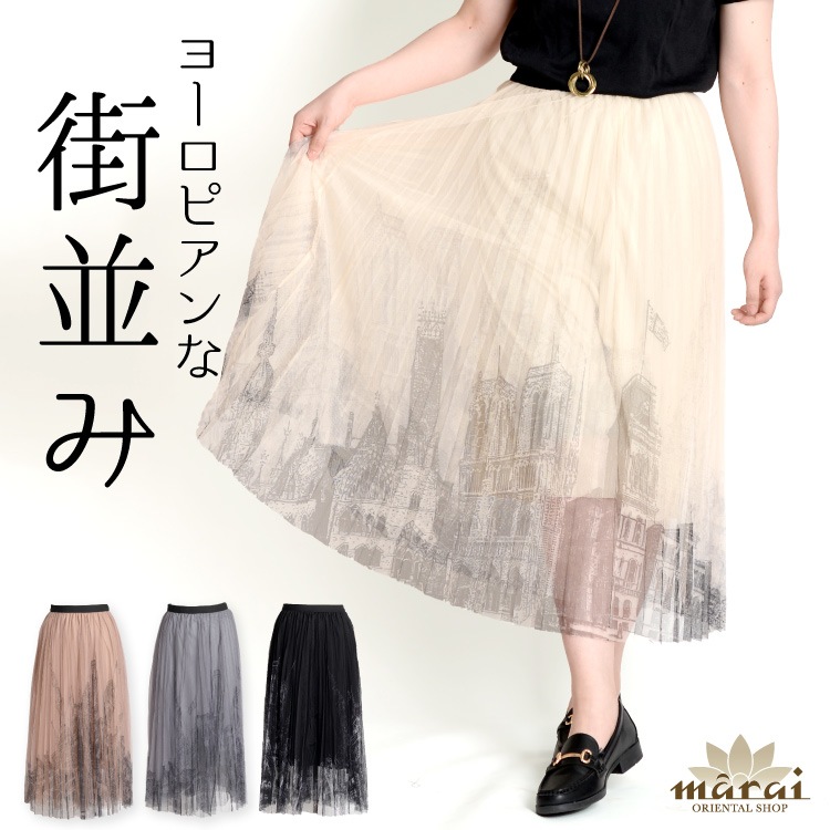 チュールスカート スカート 心を踊らせるチュールの重なり。レイヤードロングスカート チェック柄 レディース フレアスカート 体型カ...