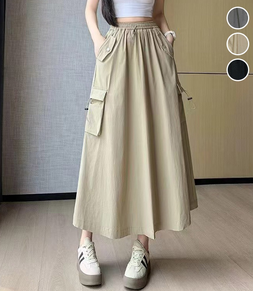 フロントボタンで2WAY。サイドくしゅくしゅロングスカート&ワイドパンツ