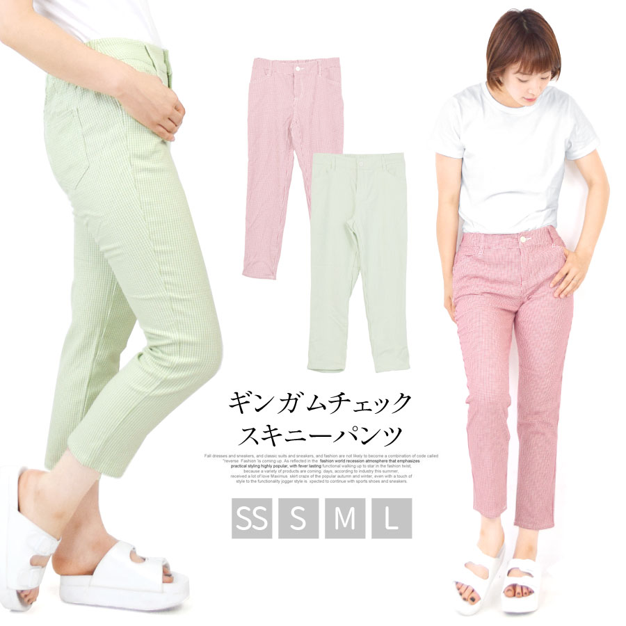 スキニーパンツ レディース ギンガムチェック ボトムス パンツ 9分丈 アンクル丈 アンクルパンツ 【送料pt100】
