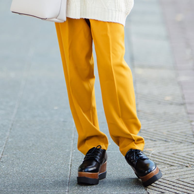 リンクルプリーツ ビビットカラー ワイドパンツ