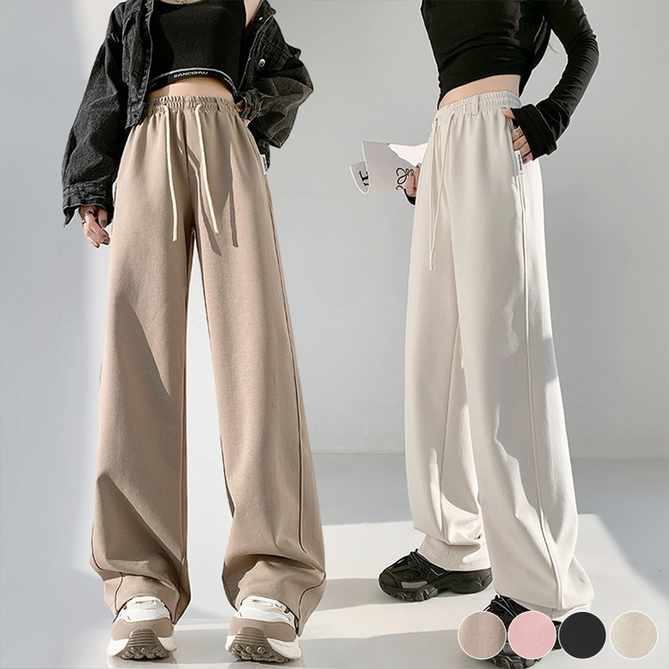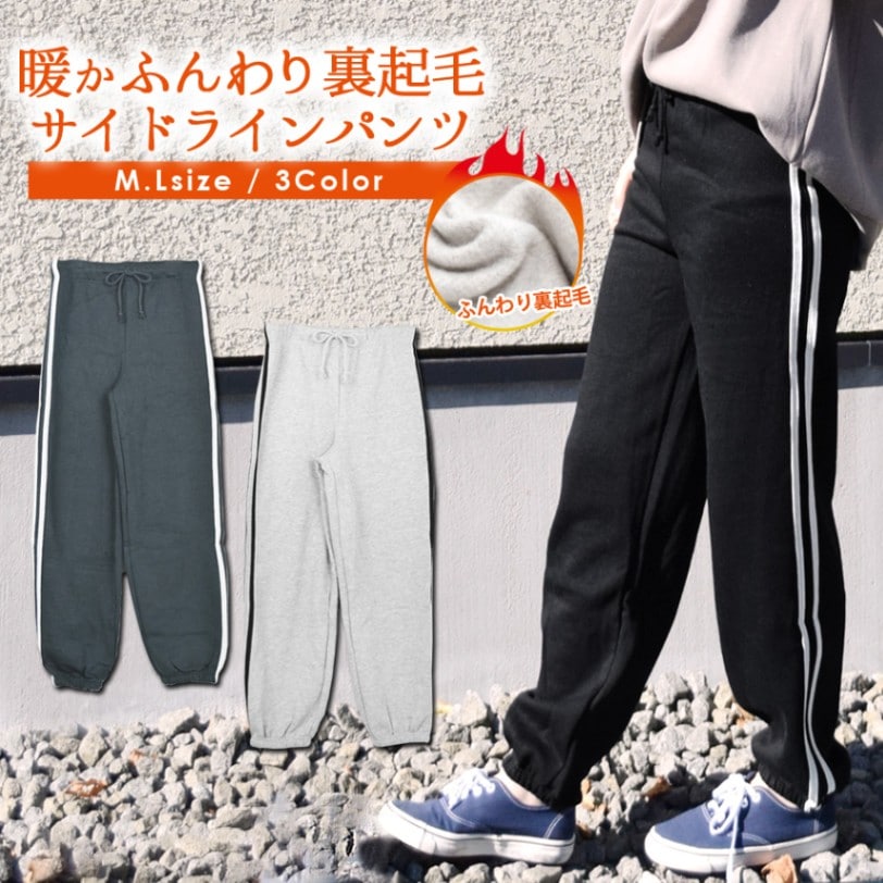 スウェットパンツ 裏起毛 綿混 サイドライン レディース ボトムス ウエストゴム 紐 あったか 【送料pt100】