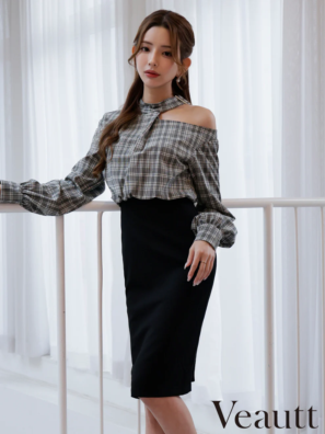 【Veautt/ヴュート】オフショルダー 2Way ウエストチャーム ミディアムタイトドレス (VT022518)
