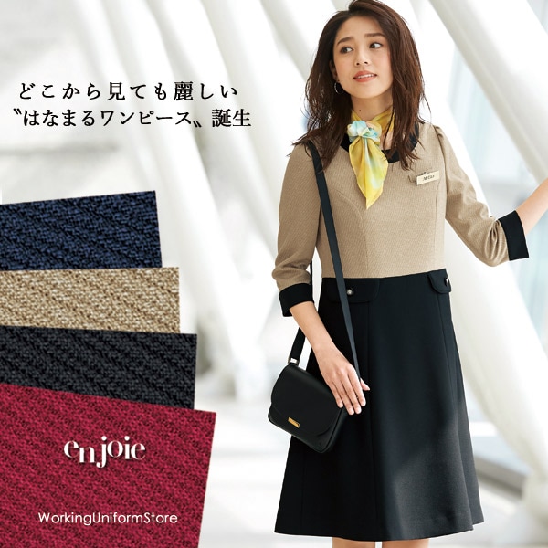 エンジョイ 七分袖ワンピース NAW054 クロスドビーストレッチ ホテル 接客制服