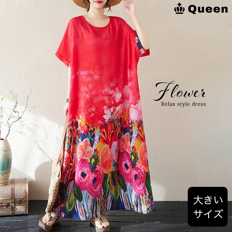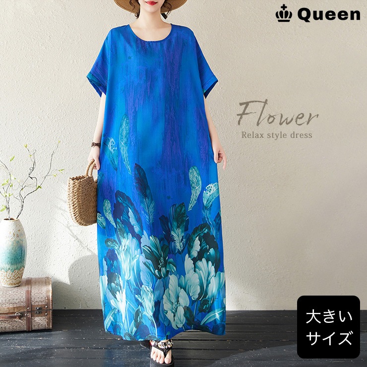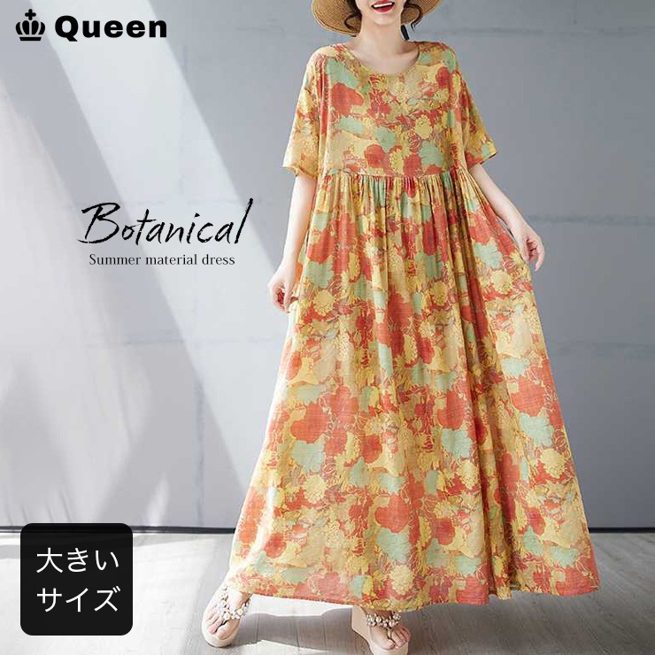 大きいサイズ レディース シャツワンピ 長袖 ティアードワンピース ボタニカル柄 ロング丈 春 秋 (609995)