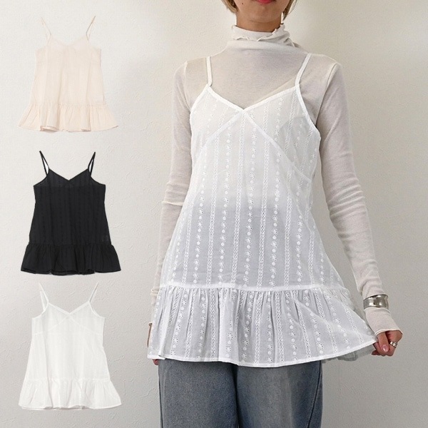 綿レースギャザーキャミチュニック