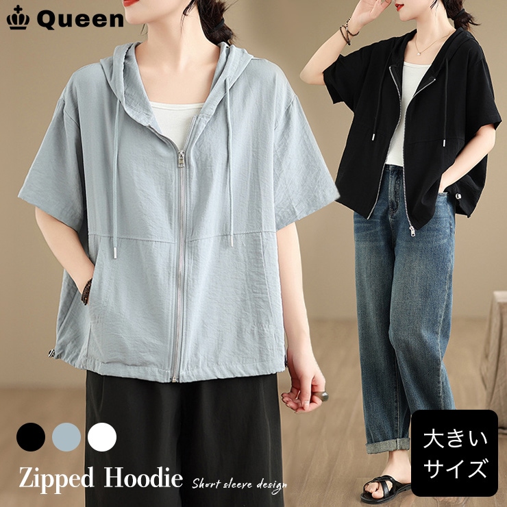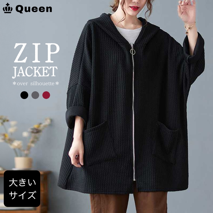 大きいサイズ レディース パーカー ニット ジップ 羽織り アウター 無地 オーバーサイズ トップス 春 秋 冬 (1218933...
