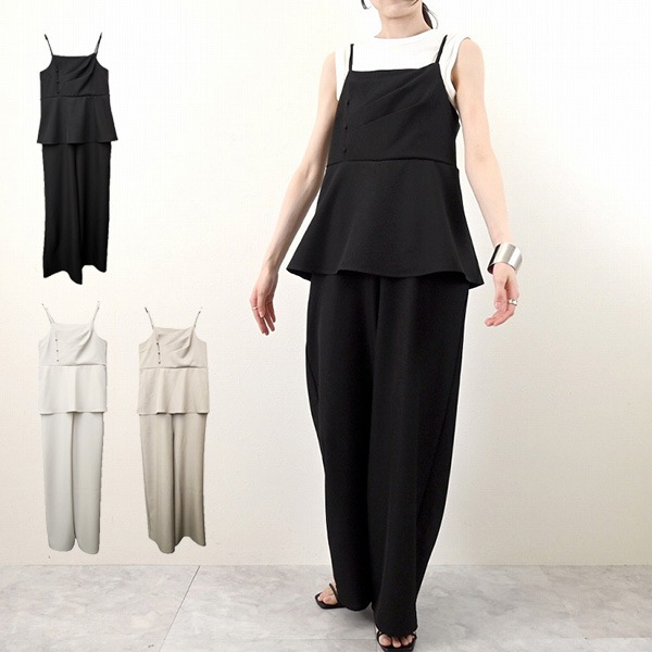 リネンタッチレイヤードキャミオールインワン
