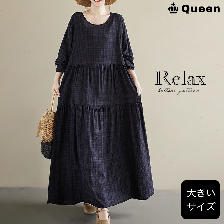 モノトーンマドラスチェック柄ロングワンピース (605031)