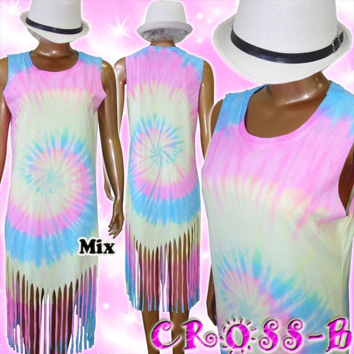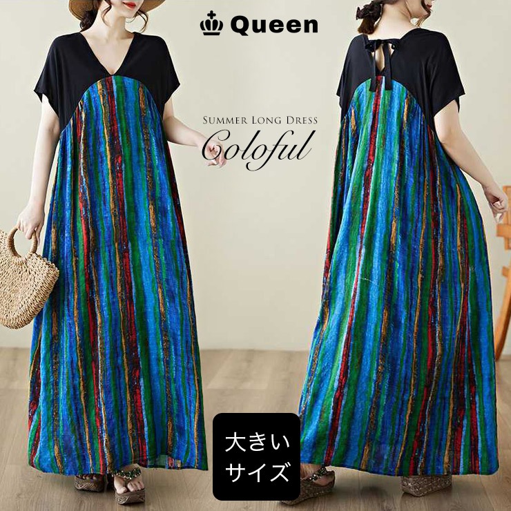 マルチストライプ柄切り替えバックリボンワンピース (629129)
