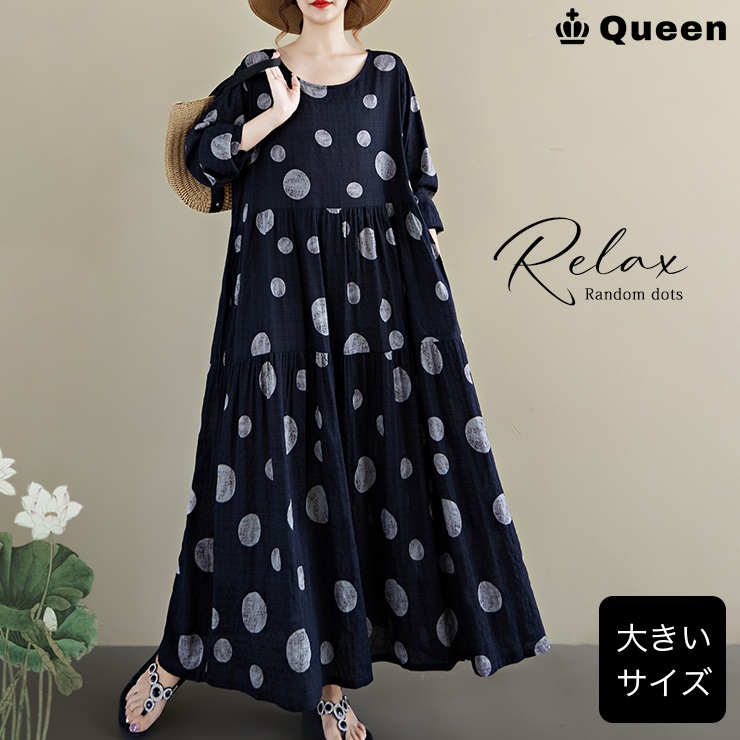 大きいサイズ ワンピース ティアードワンピ 長袖 ボタニカル モノトーン マキシ丈 レディース 春 秋 L LL 3L 4L (6...