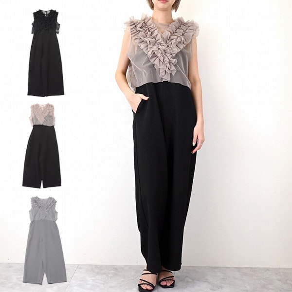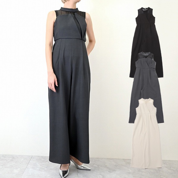 リネンタッチ×オーガンジードッキングタックオールインワン