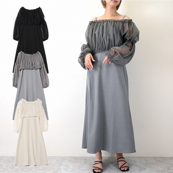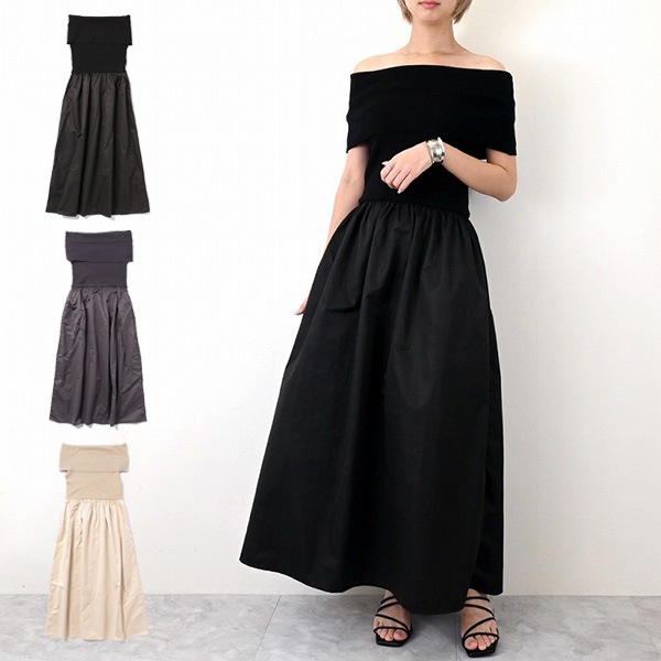 ニット×タフタオフショルワンピース