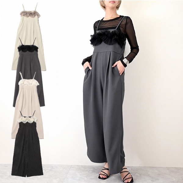 リネンタッチピンストライプチュールドッキングオールインワン