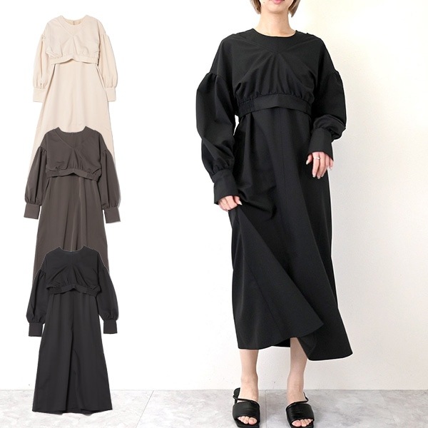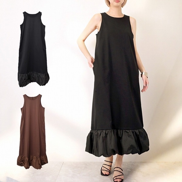 天竺×タフタドッキング裾バルーンワンピース