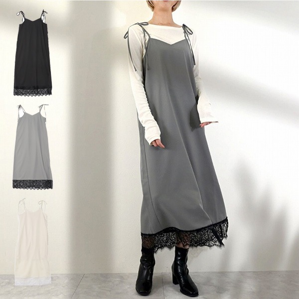ツイルレースリボンキャミワンピース